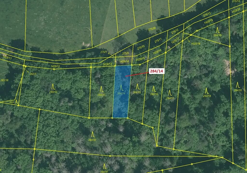 Lesní pozemek o výměře 441 m2, parcelní číslo 284/14, podíl 1/1, katastrální území Milavče, obec Milavče, obec s rozšířenou působností Domažlice, okres Domažlice, Plzeňský kraj.