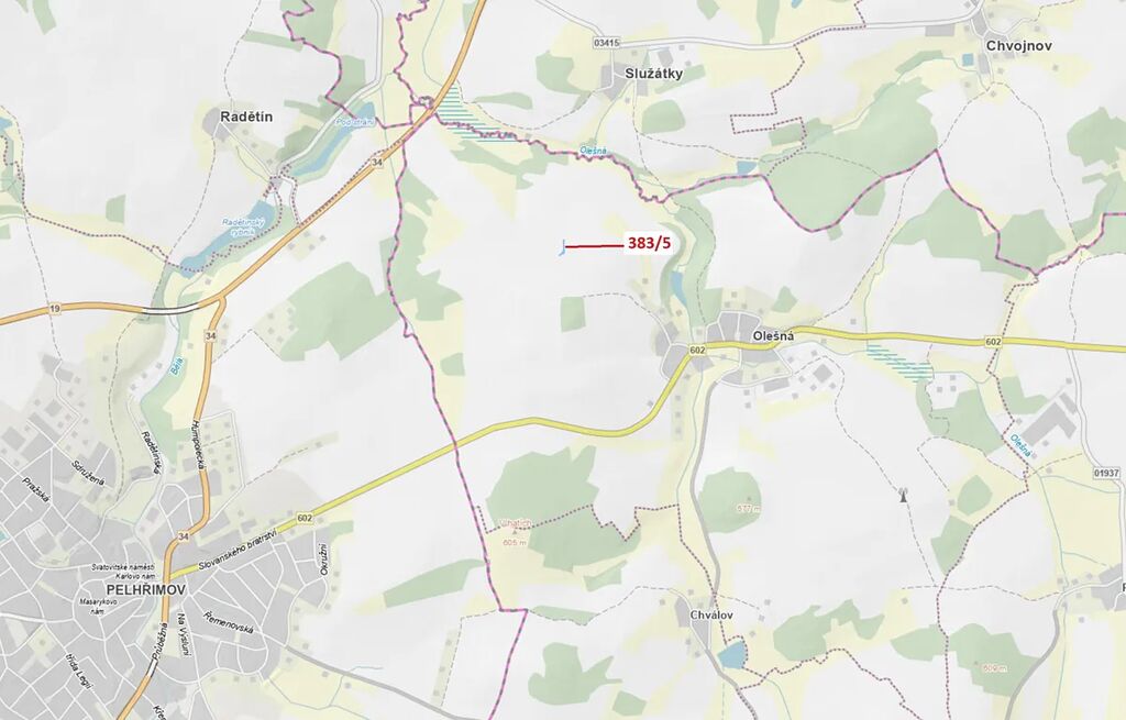 Orná půda o výměře 386 m2, parcelní číslo 383/5, podíl 1/1, katastrální území Olešná u Pelhřimova, obec Olešná, obec s rozšířenou působností Pelhřimov, okres Pelhřimov, Kraj Vysočina.