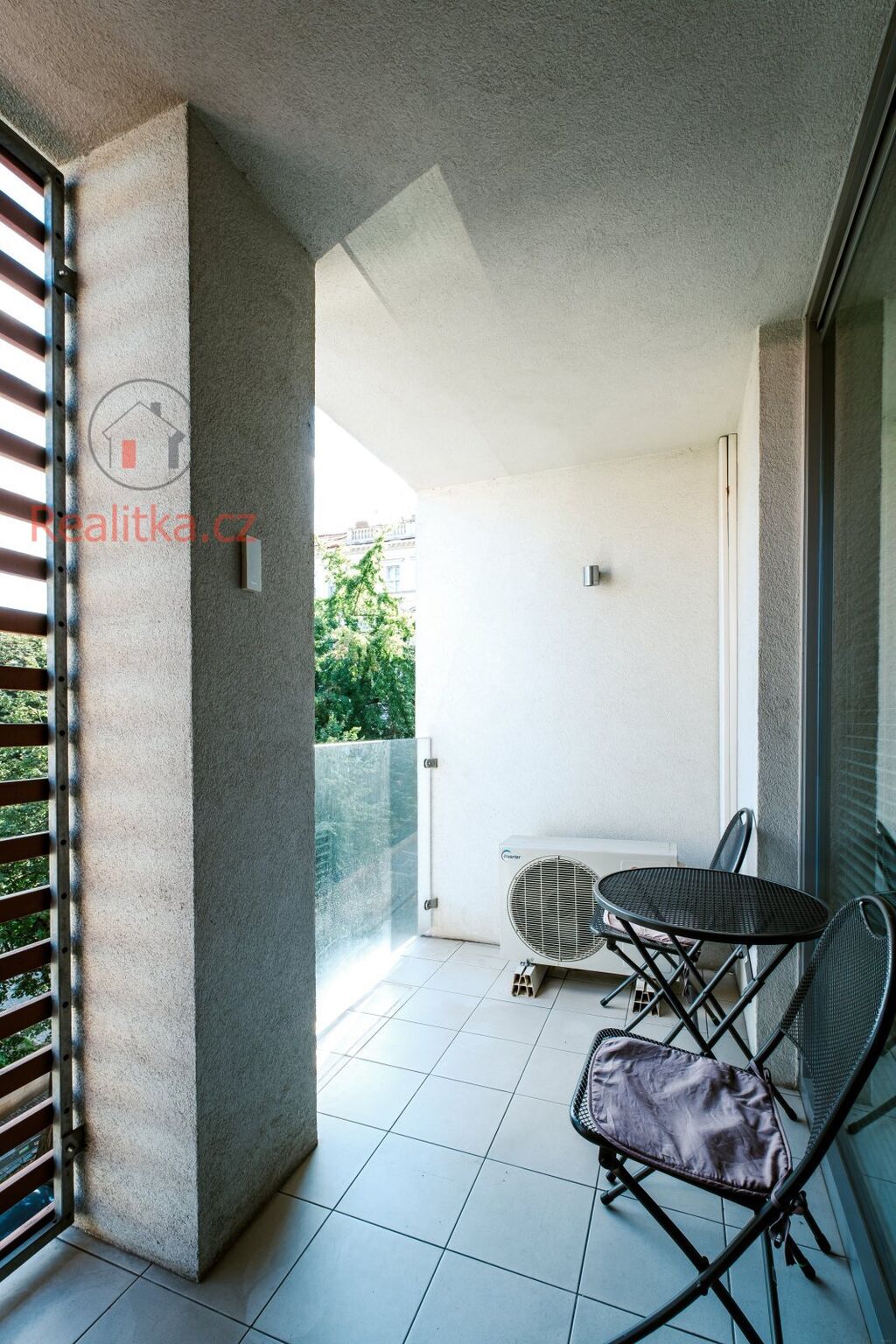 •	Lodžie s výhledem do parku, se zábradlím z bezpečnostního skla a mrazuvzdornou dlažbou