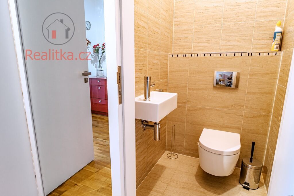 •	WC: Moderní WC Geberit, keramický obklad a dlažba