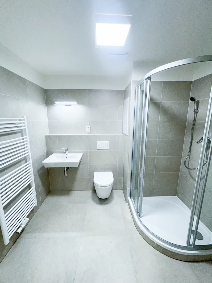 Novostavba nebyla provozována a byty jsou zcela nové. Samozřejmostí je vysoký standard zařízení jednotek - ty jsou vč. kuchyňských linek, každá má také vlastní koupelnu s WC a balkon;.