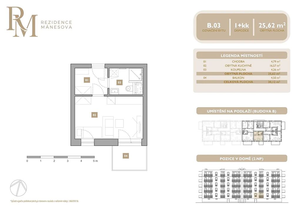 Moderní byt 1+kk s balkonem v projektu Rezidence Mánesova v Lipníku nad Bečvou nabízí praktické a útulné bydlení v klidné lokalitě s výbornou dostupností centra města. Byt je vybaven vinylovými podlahami, teplovodním podlahovým topením a kuchyňskou linkou v ceně bytu. Samozřejmostí je příprava pro venkovní žaluzie a u bytů ve 4.–6. NP také příprava na klimatizaci. Interiérové prvky je možné zvolit ve světlé (2NP, 4NP, 6NP) nebo tmavé variantě (3NP, 5NP).