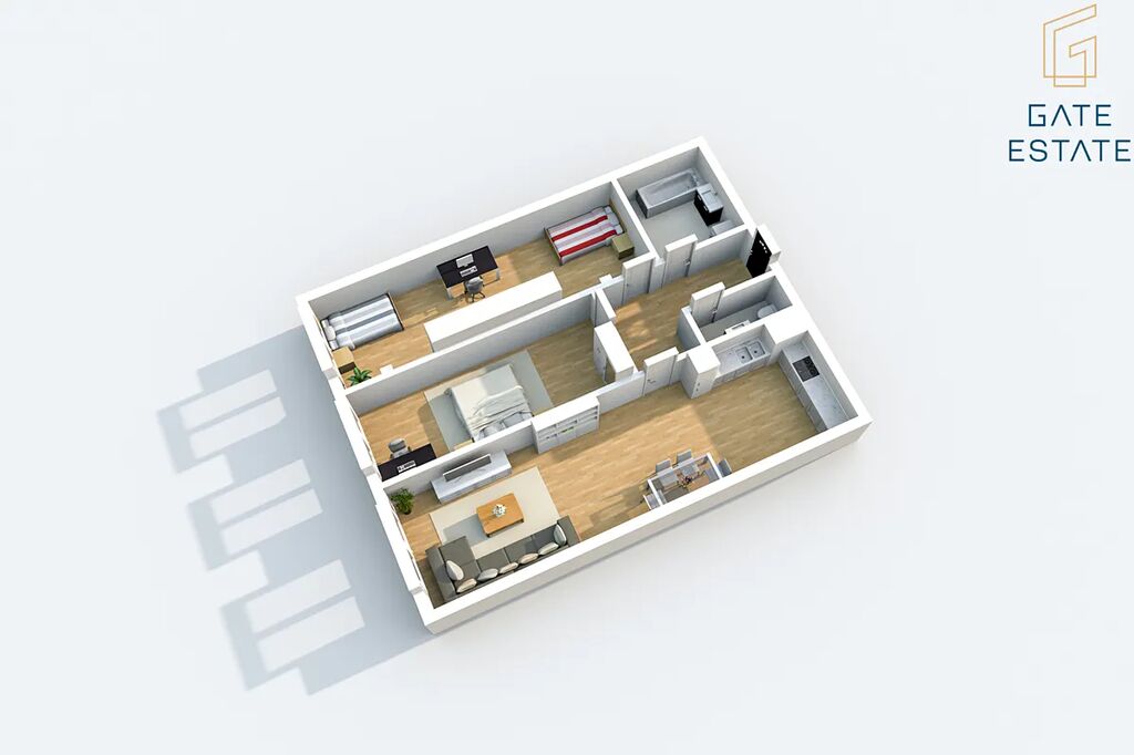 V tomto inzerátu uvádím byt 3kk, 96m2 + sklep, umístěný v 1NP. Byt je vybavený kuchyňskou linkou na míru vč. spotřebičů výše uvedených. Pro lepší představu jsme pro Vás vytvořili 3D půdorysy (rozmístění nábytku je pouze orientační) pro lepší čitelnost a vizualizaci budoucí kuchyně. V barevném půdorysu, který uvádíme ve fotografiích, se jedná o byt č. 0.3.