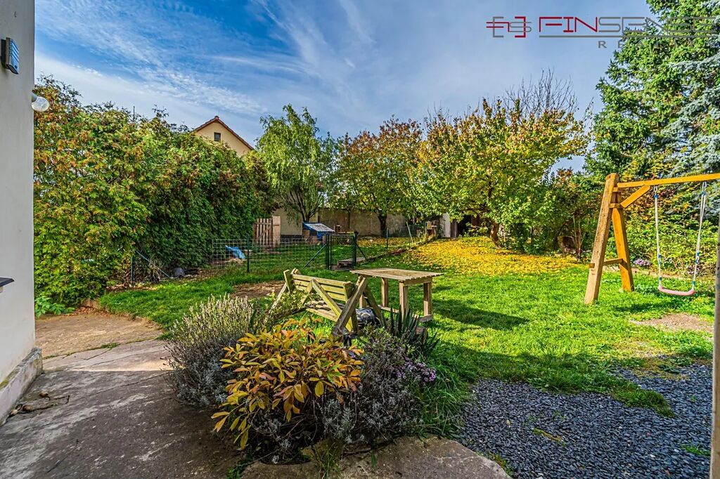Zahrada je příjemně prostorná a rovinatá s dvojgaráží a širokým vjezdem z ulice. Nabízí dostatek místa pro relax, rodinné posezení i případnou výstavbu menšího domku nebo ateliéru.