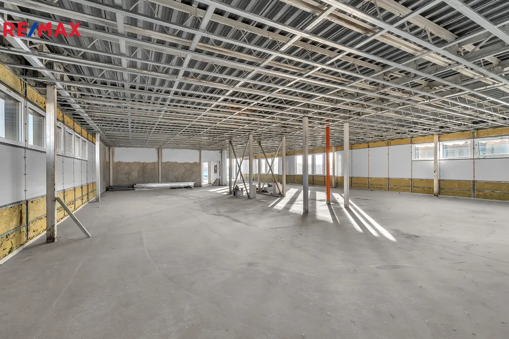 Celková užitná plocha budovy ve dvou patrech činí 876,7 m² a stojí na pozemku o výměře 1004 m². Zastavěná plocha je 451 m². Před budovou je k dispozici parkoviště pro 8 osobních aut. Interiér stavby je v současnosti nedokončený, což umožňuje naprostou volnost při plánování dispozic. Budova má zděný střed se schodištěm do patra, ostatní části jsou postaveny z ocelové konstrukce a opláštěny panely Kingspan, což zajišťuje energetickou úspornost a moderní vzhled. V přízemí se nachází vstup z parkoviště, tři vjezdy do prostor pro sklad a výdej zboží. V patře je navržený kancelářský prostor, sociální zázemí a další místnosti, které lze upravit podle vlastního projektu či specifických potřeb.