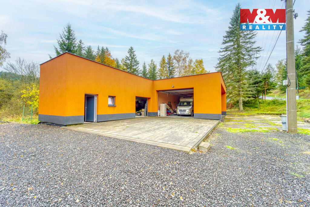 Objekt ve tvaru písmene „L“ je ve výborném technickém stavu a nevyžaduje žádné další investice. Disponuje dvěma prostornými garážemi vhodnými pro osobní automobily, dvěma místnostmi, které lze využít jako sklad, kancelář nebo zázemí zaměstnanců, a sociálním zařízením (koupelna a WC).