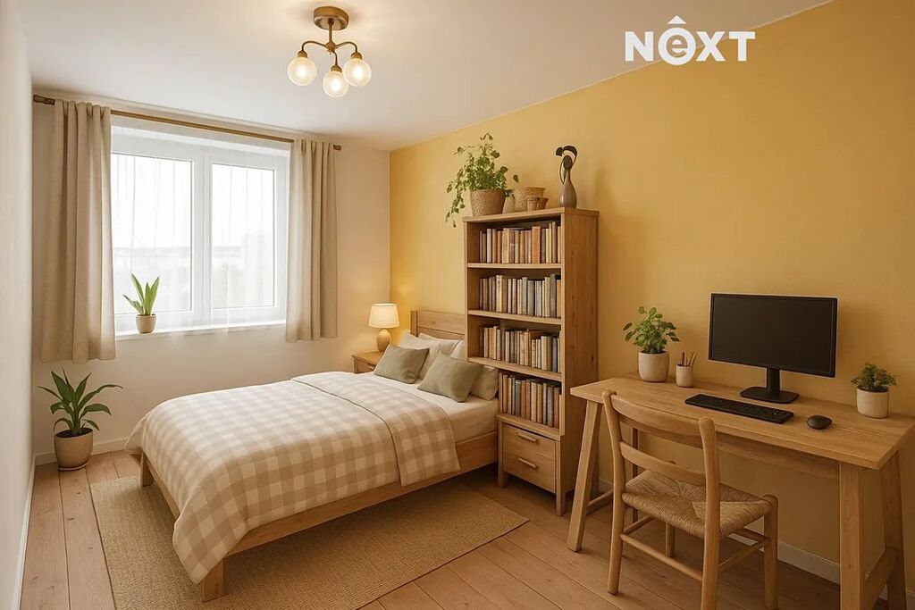 K dispozici je kuchyně s jídelnou (15,2 m2), obývací pokoj (33,6 m2), ložnice (16,6 m2), pracovna (6,8 m2), pokoj (13,9 m2), koupelna (3,6 m2) s vanou a WC. Dům je napojen na všechny inženýrské sítě - elektřina, voda, plyn, kanalizace. Vytápění domu je lokální, zajištěno wavkami. Celková plocha pozemku je 277 m2. Parkování je možné přímo před domem.