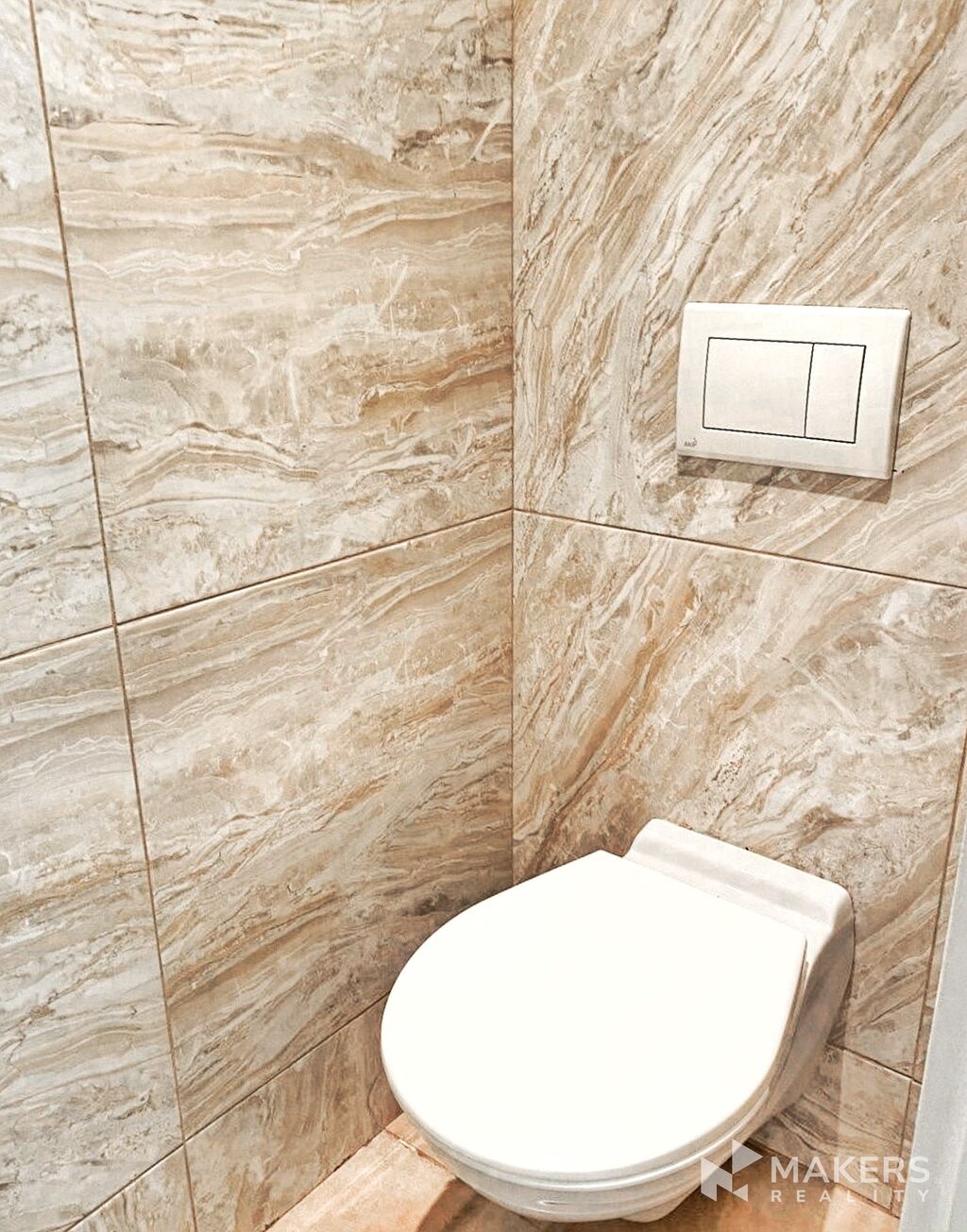 Byt je vybaven kuchyňskou linkou, lednicí, mikrovlnnou troubou, sklokeramickou varnou deskou a digestoří. Koupelna je vybavena vanou, zrcadlem, topným žebříkem, umyvadlem, a samostatným WC s pračkou.
