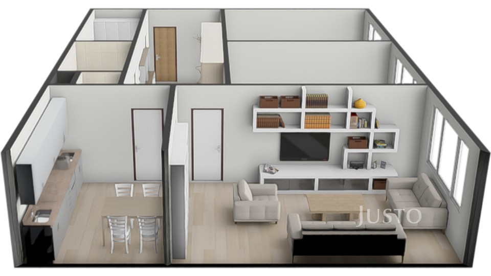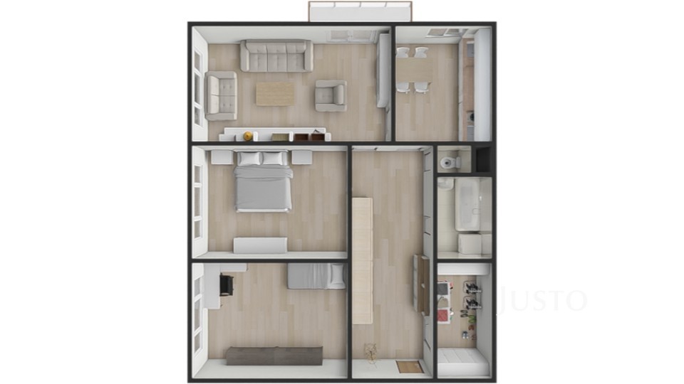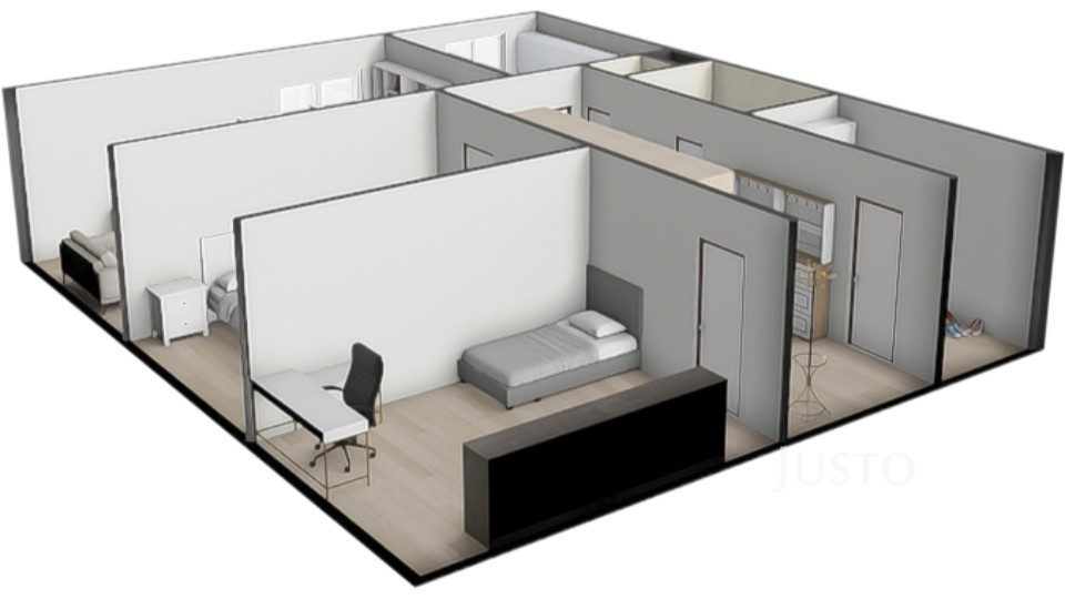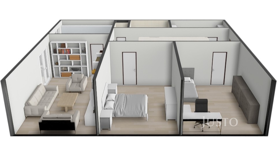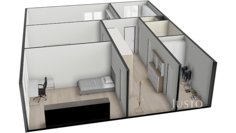 - v srdci bytu je opravdu prostorná hala, která může sloužit jako další úložný prostor, může být částečně využita jako herna pro děti atp.