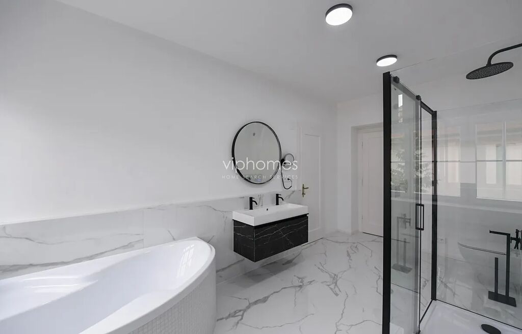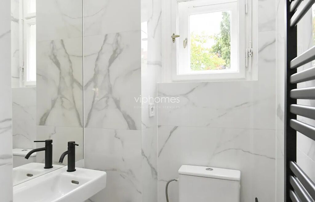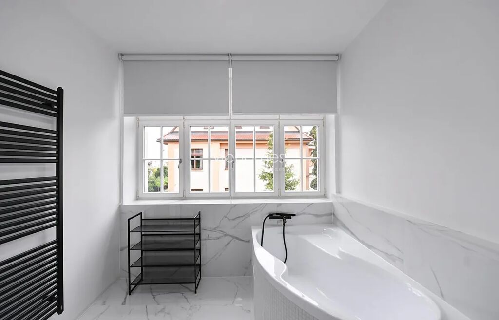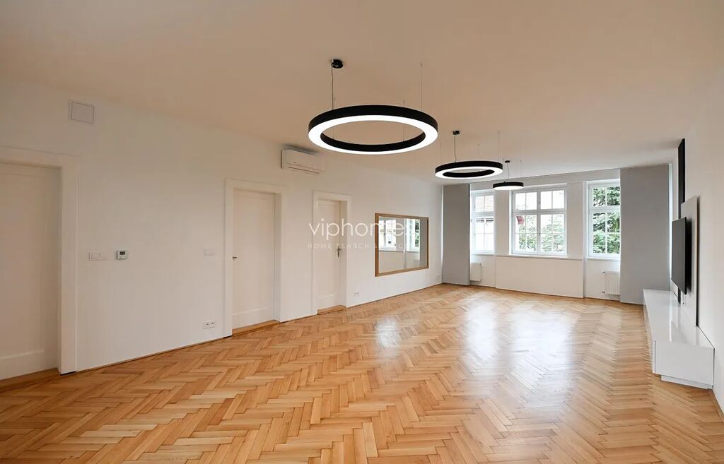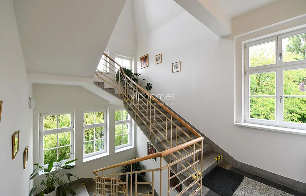 Částečně zařízený, klimatizovaný, byt po kompletní rekonstrukci, s výhledy do zeleně, situovaný ve 2.NP stylové vily se zahradou. Prominentní rezidenční čtvrť Praha 6 - Hanspaulka, v blízkém dosahu místních parků, s četnými možnostmi sportovního vyžití a relaxace, patří k nejžádanějším v Praze. Nabízí rychlé spojení do centra (tram, bus - cca 10 min. k metru Dejvická), na letiště a k mezinárodním školám. Málokterá lokalita poskytuje tak zajímavé a atraktivní okolí, místo, které je vzdálené ruchu velkoměsta a přitom se vyznačuje skvělou dopravní dostupností a snadným dosahem veškerých služeb.