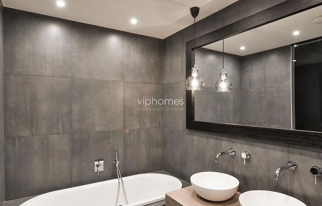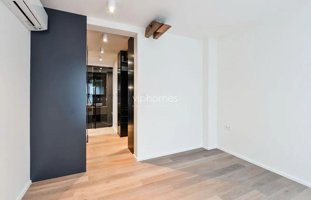 Interiér bytu o velikosti 137 m2 tvoří moderně propojený obývací pokoj s kuchyní, 2 prostorově velkorysé ložnice, 2 minimalisticky pojaté koupelny ze sprchou a toaletou, šatna, technické zázemí a vstupní hala.