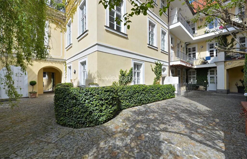 Ojedinělá možnost nabídky luxusního zařízeného bytu v místě s krásnou atmosférou a tradicí. Jedinečné místo přímo v srdci historické Malé Strany, v pěším dosahu historických památek a nově otevřených zahrad Pražského Hradu. V nejbližším okolí naleznete galerie, kavárny a vyhlášené restaurace. Historický rezidenční komplex se skládá se ze čtyř budov s terasami, zahradami a dvorními prostranstvími s kašnami a zelení. Díky citlivé, pečlivé a jednotné rekonstrukci té nejvyšší úrovně se z tohoto domu stalo místo, které si podrželo svou historickou identitu a přitom je komfortní a okouzlující zároveň.