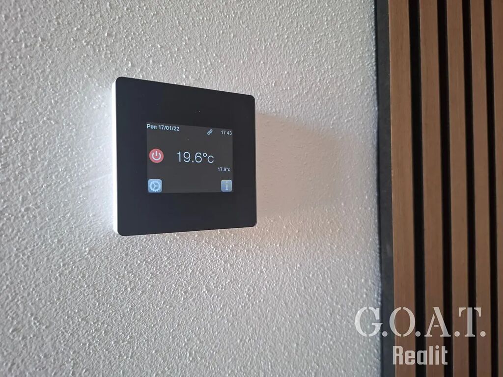 Dům je vytápěn moderním elektrickým podlahovým vytápěním a je vybaven fotovoltaickým systémem pro ohřev teplé vody, což výrazně snižuje provozní náklady. Podlahy tvoří kombinace keramické dlažby a vinylu v dekoru dřeva, což vytváří útulnou atmosféru – jako stvořenou pro zimní večery u krbu.