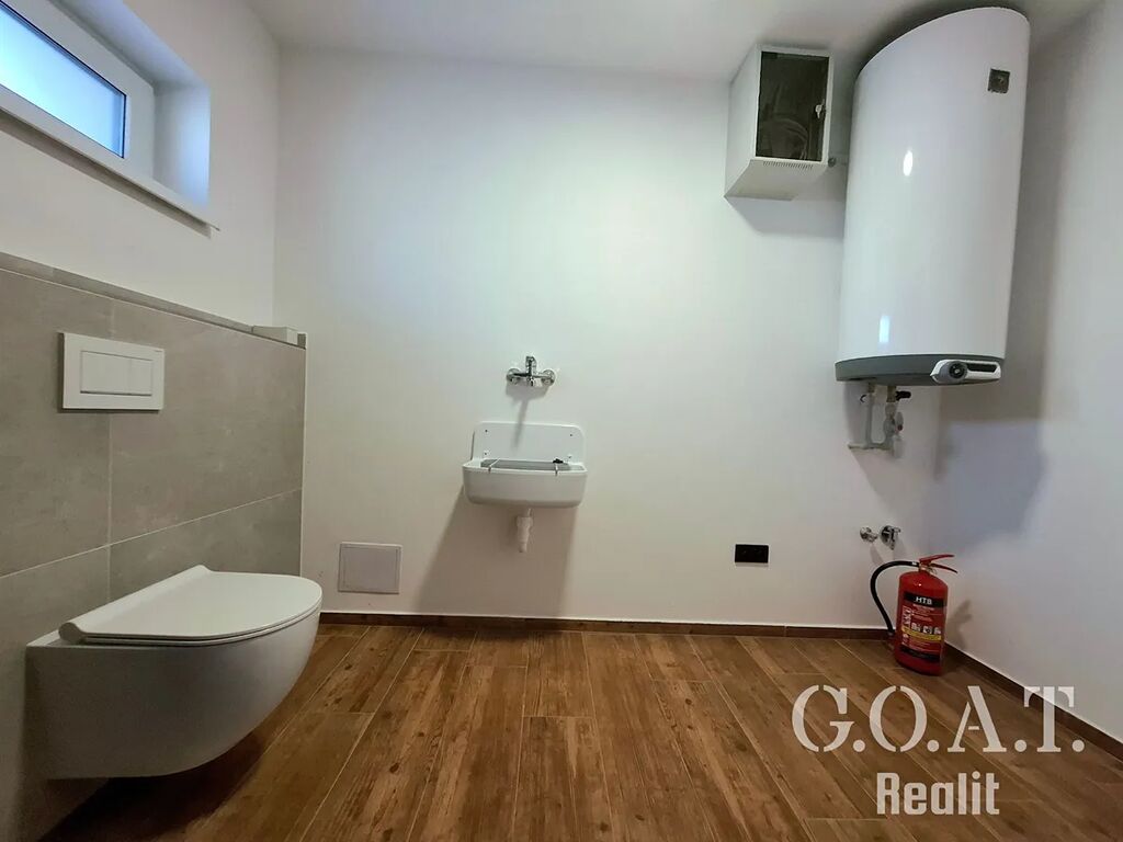 Koupelna nabízí jak sprchový kout, tak volně stojící vanu, dále toaletu a umyvadlo. Dispozice domu zahrnuje obývací pokoj s kuchyňským koutem o ploše 47 m², ložnici 18 m², dva další pokoje o velikosti 25 m² a 22 m², prostornou koupelnu, technickou místnost, chodbu a zádveří.