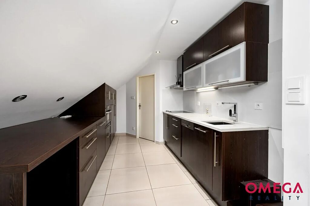 Kuchyňská linka je přibližně 3 roky stará a je vybavena sklokeramickou varnou deskou, myčkou a horkovzdušnou troubou.