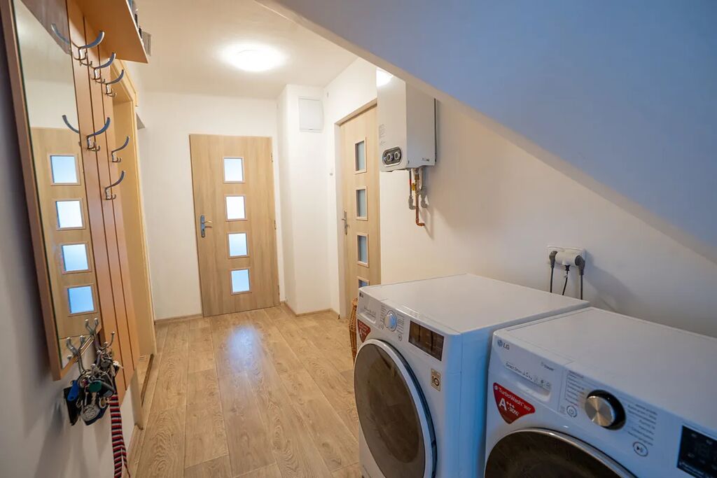 Nabízím udržovaný vícegenerační rodinný dům o třech bytových jednotkách s prostornou zahradou a garážemi v ulici Komenského v Tanvaldě. Dům se nachází na slunném klidném místě nedaleko centra s výhledem na Šumburk n.D. Jedná se o samostatně stojící rodinný dům o jednom podzemním podlaží, kde se nachází sklady, dílna, kotelna a sklepní kóje, a třech nadzemních podlažích, ve kterých je vždy umístěna bytová jednotka o velikosti 3+1. K dispozici je také společná půda. Každý byt má vlastní elektrickou přípojku, poměrové měření vody a samostatný ohřev teplé vody pomocí plynové karmy. Společné je však ústřední plynové vytápění. V případě potřeby je zde i záložní kotel na tuhá paliva. Objekt je napojený na obecní vodovod a kanalizace je svedena do septiku. K domu patří udržovaná zahrada o výměře 1.362 m2, na které se nachází ovocné stromy a keře, dále pak dřevěná pergola. K Dispozici je také velká dvojgaráž od zast. ploše 91 m2 a jedno zastřešené parkovací stání. Dům i garáže jsou celoročně přístupné po místní asfaltové komunikaci. Rodinný dům je vhodný pro početnou rodinu nebo jako investici na pronájem jednotlivých bytů. Volné dohodou.