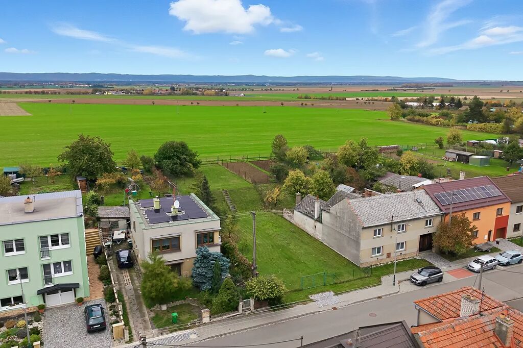 Pozemek má ideální šířku 15 m, je orientován na jižní stranu a rozdělen do dvou výškových úrovní – spodní část navazuje na obecní komunikaci a je vhodná pro stavbu rodinného domu, horní část lze využít jako zahradu nebo pro pěstování zeleniny.