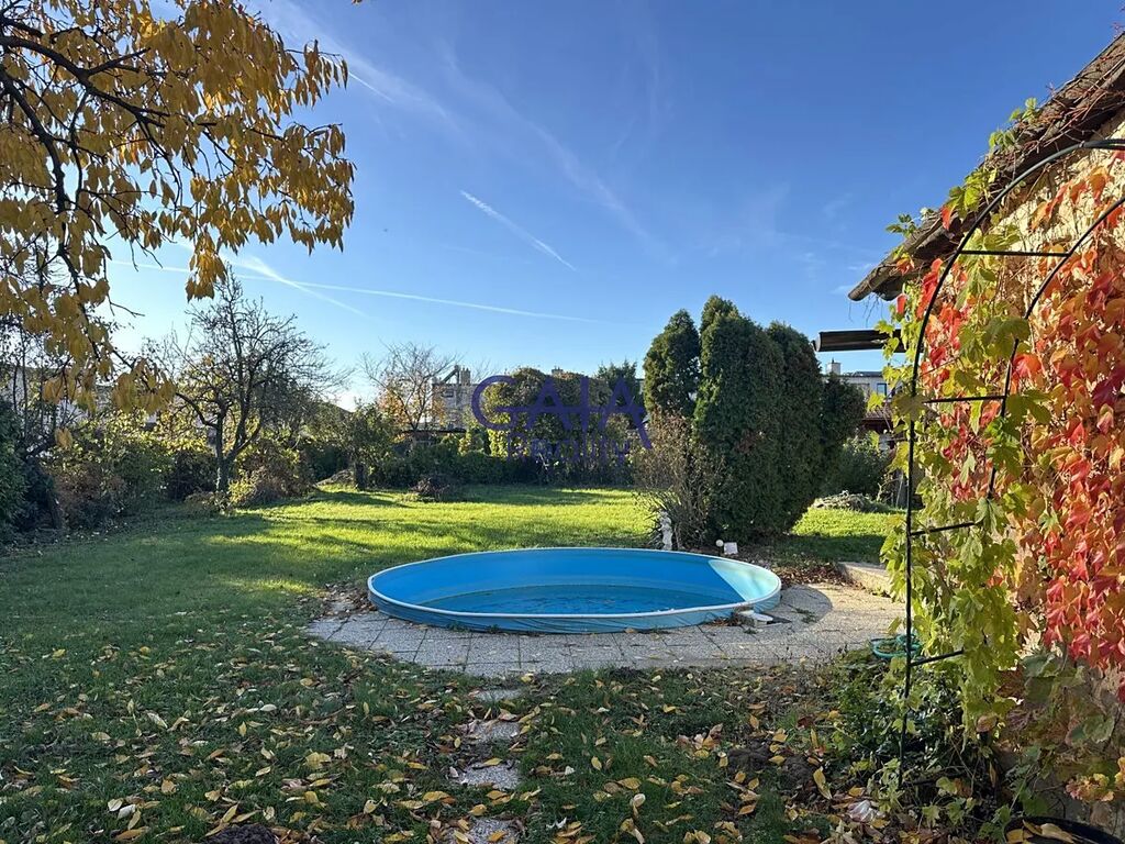 V dvorním traktu se nachází garáž, skladové prostory, sklep a venkovní posezení. Na zatravněné, oplocené zahradě je umístěn zapuštěný bazén. V zadní části pozemku je k dispozici sdílená studna.