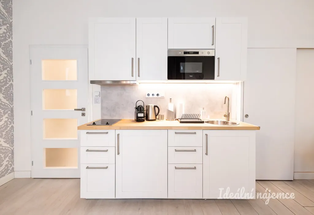 K dlouhodobému podnájmu Vám nabízíme kompletně zařízený byt o dispozici 2+kk. Byt se nachází ve 3. patře udržovaného cihlového domu s výtahem, nedaleko Václavského náměstí.