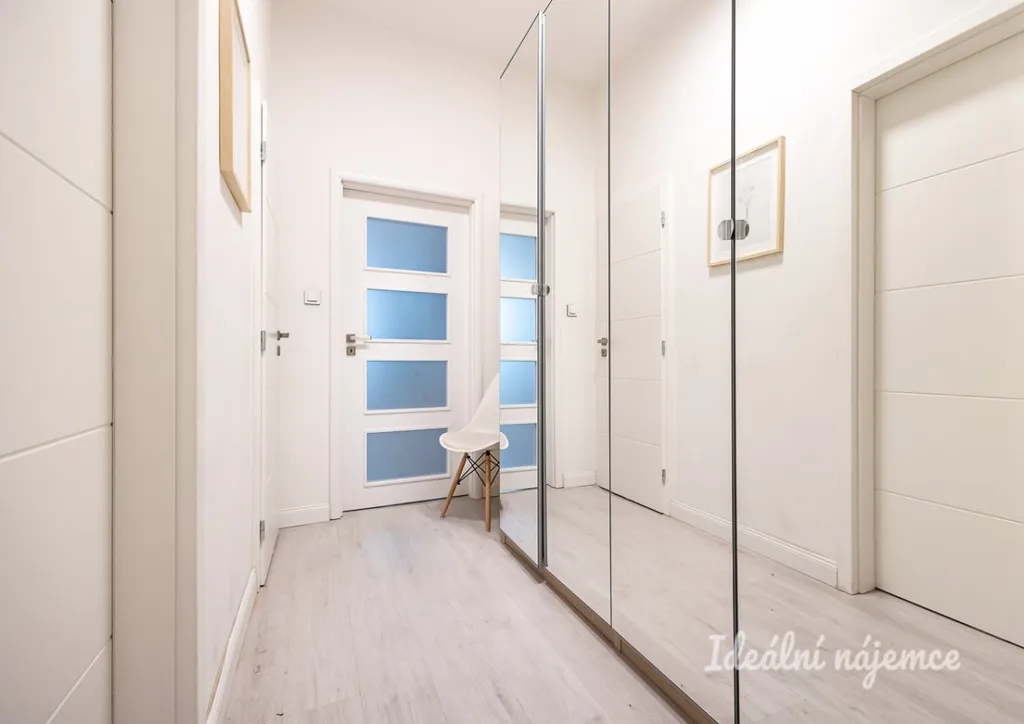 Byt se skládá z centrální chodby zařízené velkou vestavnou skříní.