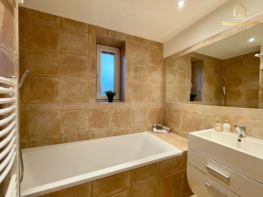 Podlahová krytina je tvořena kombinací parket, plovoucích podlah a dlažby. V kuchyni je k dispozici prostorná kuchyňská linka vybavená spotřebiči, jako je myčka, trouba a indukční deska. Všechny pokoje jsou neprůchozí – dva z nich jsou prostorné a jeden menší, ideální například jako dětský pokoj nebo pracovna. V koupelně najdete vanu, umyvadlovou skříňku a zrcadlo.