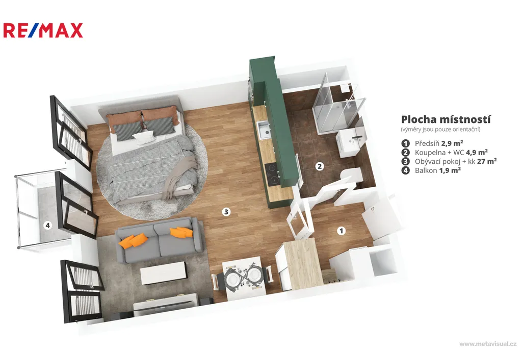 - obývací pokoj s kuchyňským koutem (27 m²)