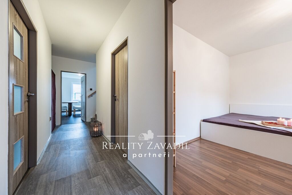 V podkroví je aktuálně otevřený prostor, který lze přizpůsobit vašim potřebám – je zde možnost vybudování tří až čtyř pokojů a koupelny s WC (viz vizualizace ve fotografiích inzerátu).