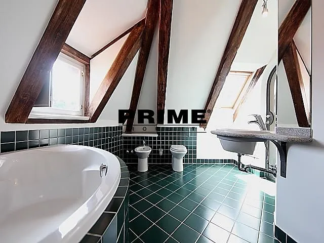 Nájemce neplatí provizi. Zrekonstruovaný, 3 ložnicový, zařízený, podkrovní atypický mezonetový byt se 2 koupelnami k pronájmu, 4+kk, 221m2, situovaný ve 3. a 4. patře kompletně zrenovovaného historického domu s výtahem a malebným zeleným nádvořím s fontánami.