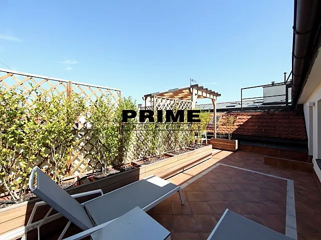 Reprezentativní, zrekonstruovaný, klimatizovaný, 3 až 4 ložnicový, nezařízený mezonet se 3 koupelnami k pronájmu, 5+1, 265m2, se střešní terasou 35m2, situovaný v 5. a 6. patře neorenesančního domu s výtahem. Budova se nachází na rozhraní Malé Strany a Smíchova u Petřínských sadů, v těsné blízkosti Francouzské školy, blízko obchodů, kaváren a restaurací, u zastávky tramvaje a jen několik minut tramvají do centra či k obchodnímu centru Nový Smíchov. Rychlé spojení tramvají do centra a ke stanicím metra Anděl, Malostranská a Národní.