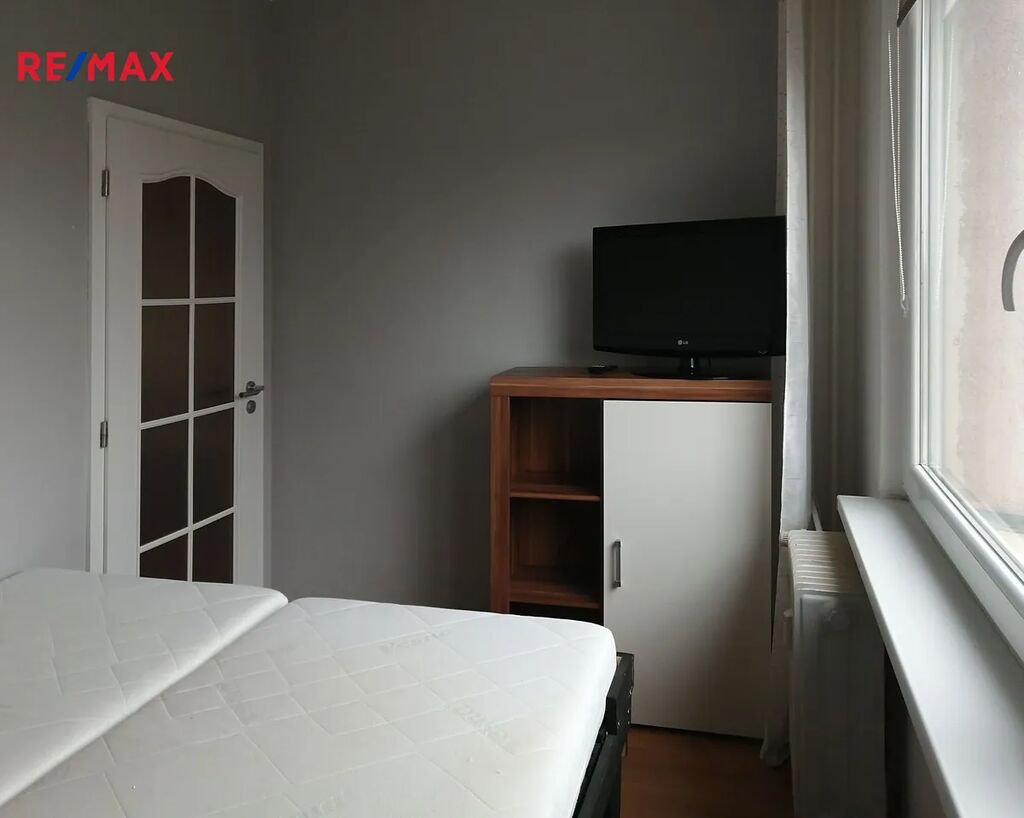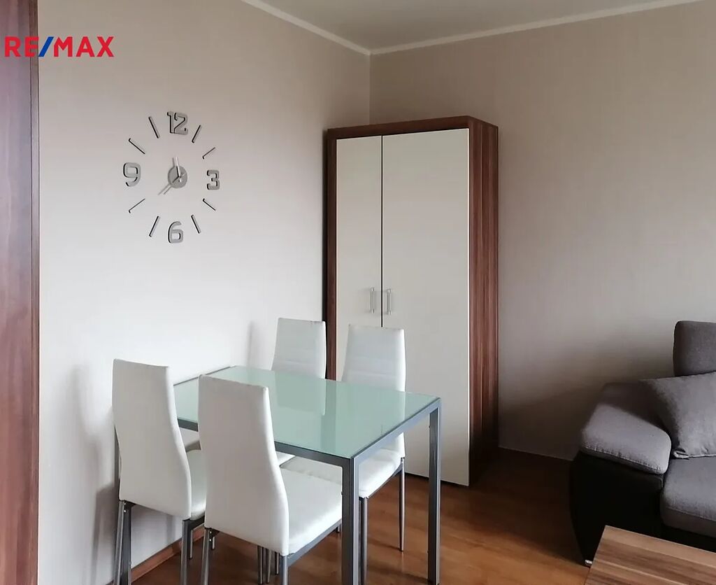 Byt se sestává ze vstupní předsíně, koupelny s WC, obývacího pokoje, ložnice a kuchyně. Byt je vybavený nábytkem a spotřebiči.