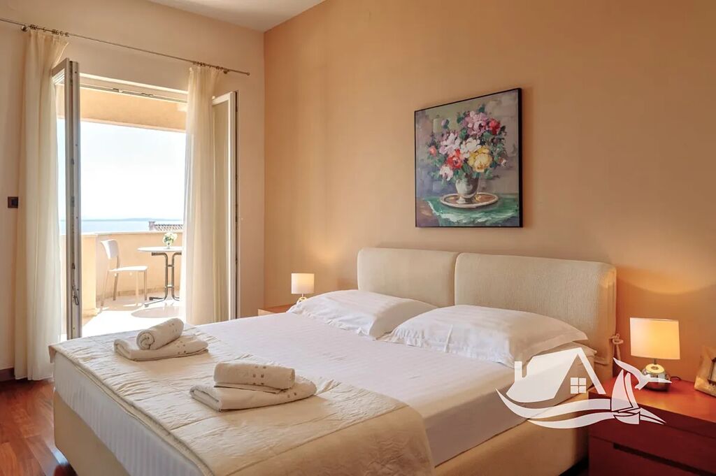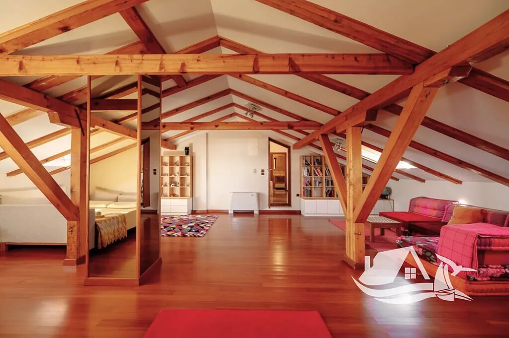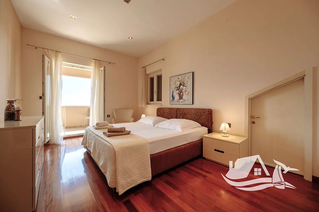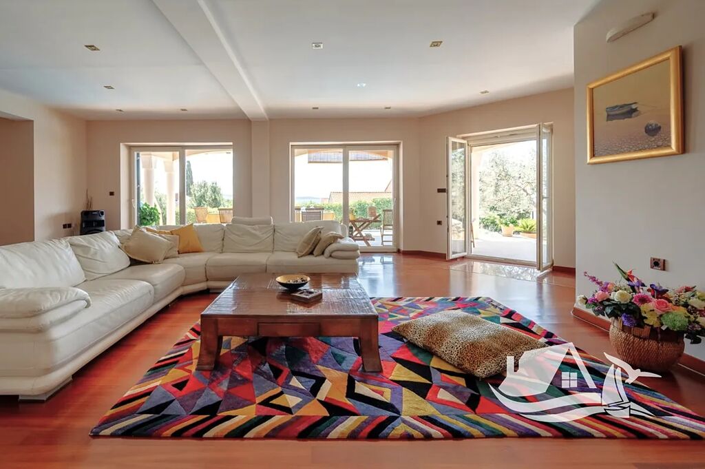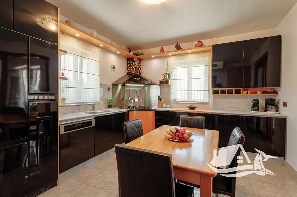 Dům se skládá ze suterénu, přízemí a podkroví. V prostorném suterénu o ploše 270,95 m² se nachází garáž pro tři automobily, fitness místnost, koupelna, tři skladové prostory a kotelna. Přízemí o rozloze 348,92 m² nabízí reprezentativní vstupní halu, čtyři ložnice (dvě s vlastní koupelnou), další koupelnu, prostorný obývací pokoj s jídelnou a kuchyní, samostatné WC, komoru a zastřešenou terasu ideální pro rodinné večeře či letní relaxaci. Z přízemí vede vnitřní schodiště do podkroví (190,21 m²), kde se nachází dvě další ložnice, koupelna, komora, herna a velká místnost, kterou lze využít jako druhý obývací pokoj nebo samostatnou kuchyni. Otevřená terasa a lodžie poskytují jedinečný výhled na moře a okolní krajinu.