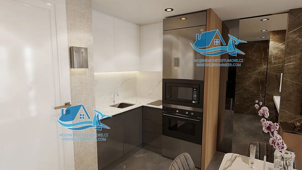 Plán splátek je na dva až tři roky bez navýšení. V ceně: klimatizace VRV, luxusní vybavení v koupelně Hansgrohe, luxusní kuchyňská linka a další. Předání podle budov do 1 roku, poslední budovy do 2 let.