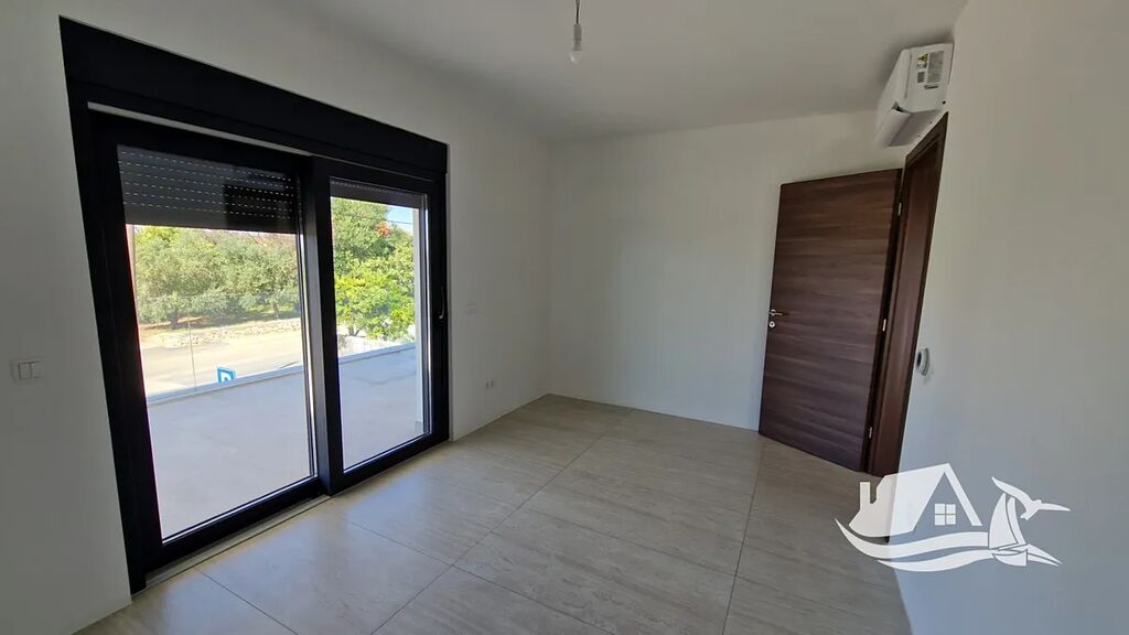 Zbrusu nový přízemní apartmán v klidné Privlace spojuje pohodlí domova s každodenní dávkou moře a slunce. Dům má pouze pět bytů a tenhle kus přízemního štěstí k němu přidává vlastní zahradu o 80 m², kde se dá snídat bosky v trávě, grilovat s přáteli i vypnout po dlouhém dni. Užitná plocha bytu je 80,99 m² a dispozice dává smysl pro běžný život: vstupní chodba, dvě samostatné ložnice, moderní koupelna, samostatné WC a praktická komora. Centrem dění je světlý obývací prostor s kuchyní a jídelnou, který plynule navazuje na zeleň venku. Celková čistá užitná plocha včetně příslušenství činí 91,49 m² a samozřejmostí je vlastní parkovací stání přímo u domu s připojením na elektřinu i vodu.