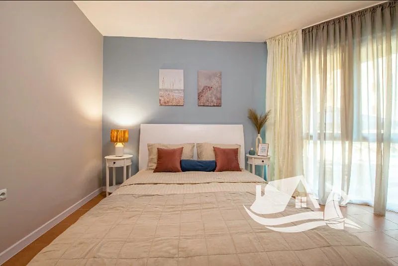 Nabízíme vám stylově zařízený apartmán v moderním provedení, který se nachází ve druhém patře menšího rezidenčního domu, jen 150 metrů od písečné pláže. Pokud hledáte komfortní zázemí u moře, kde si můžete užívat klidné chvíle i jistý výnos z pronájmu, právě jste našli ideální volbu. Apartmán o celkové ploše 58,2 m² působí velmi útulně, ale přitom vzdušně a prakticky. Je plně vybaven včetně klimatizace a všech spotřebičů – připravený k okamžitému užívání.