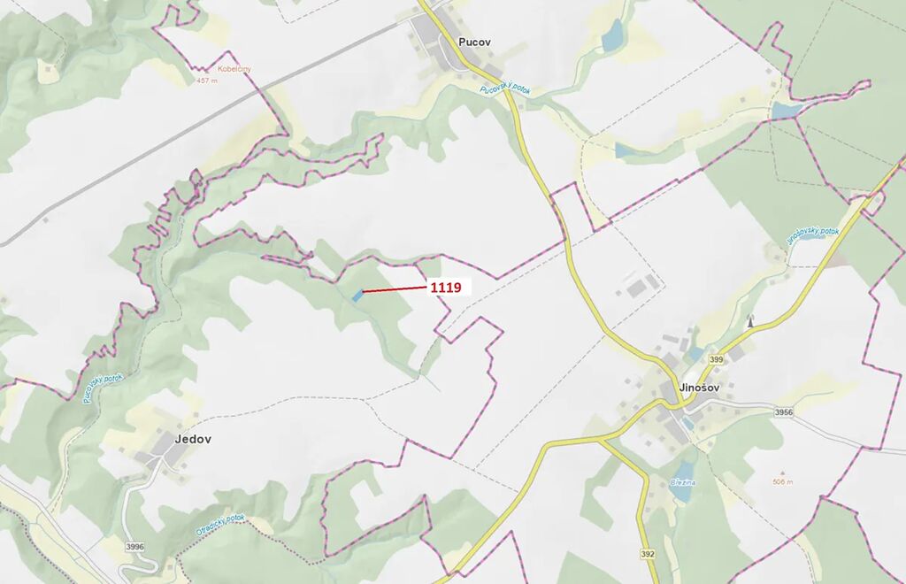 Lesní pozemek o výměře 1976 m2, parcelní číslo 1119, podíl 1/1, katastrální území Jedov, obec Náměšť nad Oslavou, obec s rozšířenou působností Náměšť nad Oslavou, okres Třebíč, Kraj Vysočina. Po těžbě.