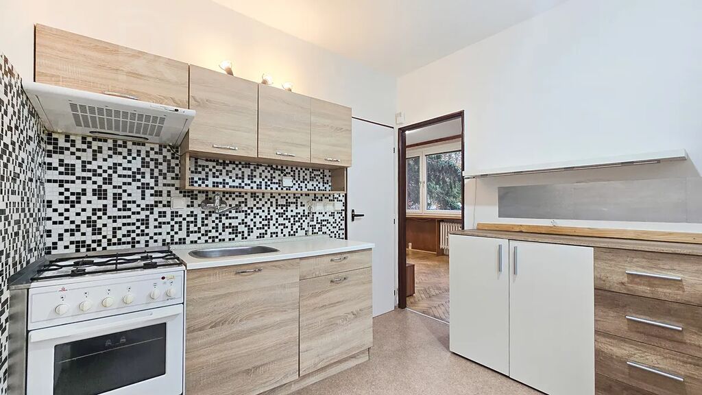 K bytu je navíc k dispozici sklepní kóje v suterénu domu. Parkování je možné na ulici.