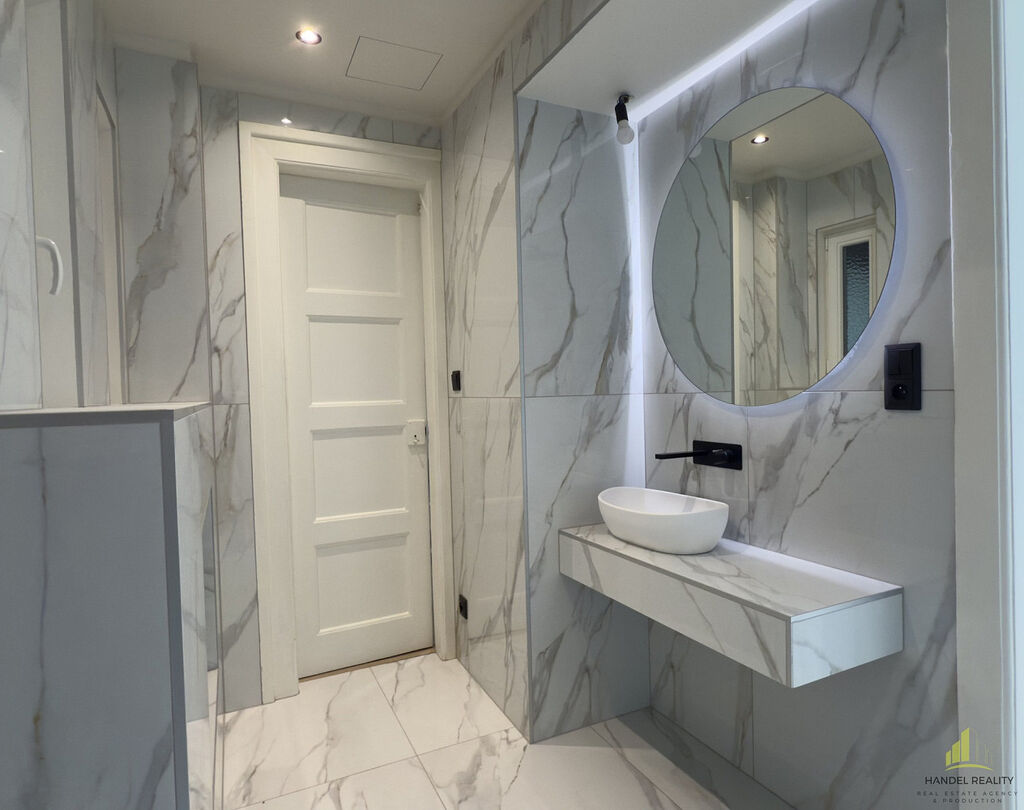 Koupelna je nově zrekonstruovaná, vybavená vanou i sprchovým koutem. O příjemné teplo se zde postará moderní tepelný žebřík, který zároveň doplňuje čistý a elegantní vzhled prostoru. Nechybí ani technická místnost kde se nachází nový plynový kotel a vývody pro pračku a sušičku, je zde dostatek místa i pro šatnu. Ve vstupní chodbě je vybudována nová šatní skříň se zrcadlem. O bezpečnost se postarají bezpečnostní dveře značky NEXT. Okna směřují jak do ulice, tak i do tichého vnitrobloku z ložnice. K bytu náleží velká společná zahrada, kterou mohou obyvatelé domu využívat pro posezení s přáteli a rodinou, odpočinek, grilování nebo třeba i vlastní zahradničení. Mimo jiné k bytu náleží i sklepní kóje.