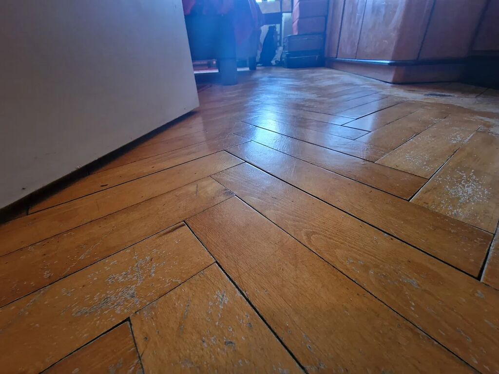 V obývacím pokoji a ložnic položeny parkety. Kuchyně, předsíň, WC + Koupelna - stěrka.