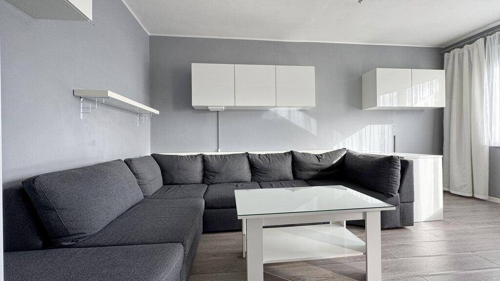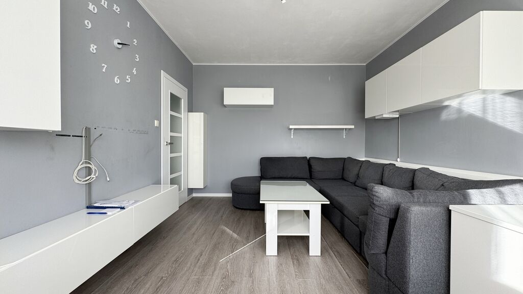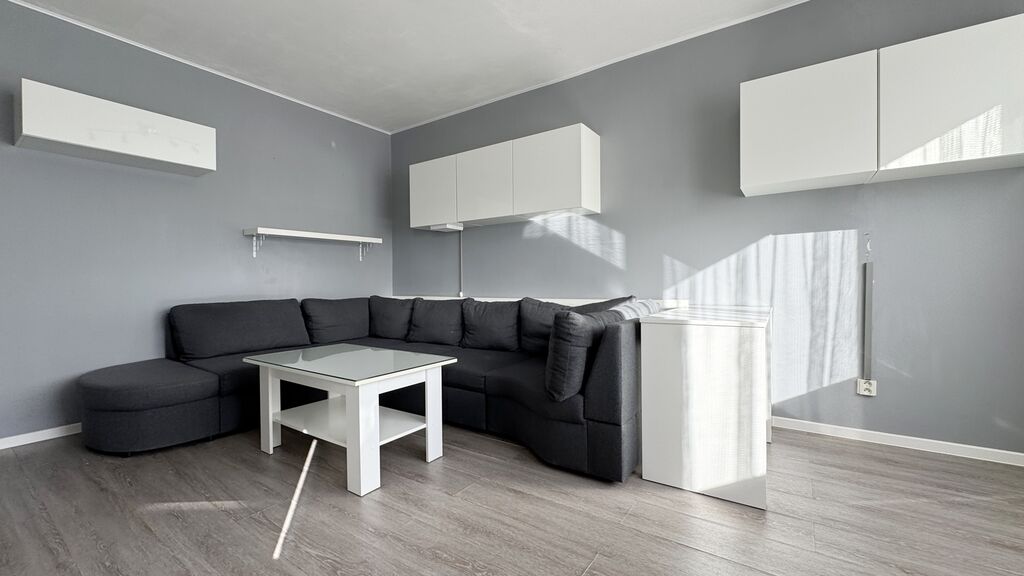Obytné místnosti jsou světlé, orientované na jih a poskytují hezký výhled do okolní zeleně; přímo za domem je dětské hřiště. Byt se pronajímá kompletně vybavený. V ložnici se nachází manželská postel a velká vestavěná skříň, v předsíni další vestavěná skříň. Obývací pokoj je zařízen sedací soupravou, konferenčním stolkem, PC stolem a úložnými skříňkami. Kuchyně je vybavena lednicí, vestavnou troubou, indukční varnou deskou, mikrovlnnou troubou, digestoří a kuchyňskou linkou na míru. Koupelna má vanu a pračku. WC je samostatné. Vstup do bytu zajišťují bezpečnostní dveře.