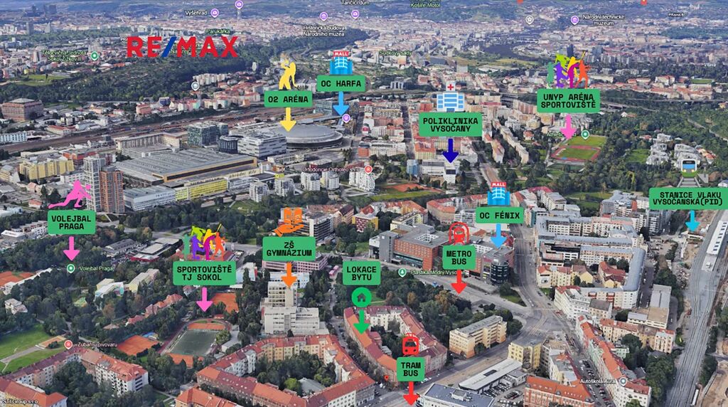 Přímo v ulici navazuje modrá turistická naučná JV stezka, která vybízí k příjemné procházce směrem k říčce Rokytce. Do 1 km od domu se také nachází cyklotrasy A26 (součást mezinárodní EuroVelo 4) a A267, které umožňují rychlé napojení na širší pražskou síť cyklostezek a povedou Vás krásnou projížďkou podél Rokytky. V docházkové vzdálenosti je také Park Podviní, ideální pro sport, běh nebo piknik a další venkovní sportoviště a několik fitness center. V blízkosti se nachází i TJ Sokol Vysočany, který rozvíjí činnost tělovýchovné jednoty a nabízí cvičení pro děti, muže i ženy všech věkových kategorií.