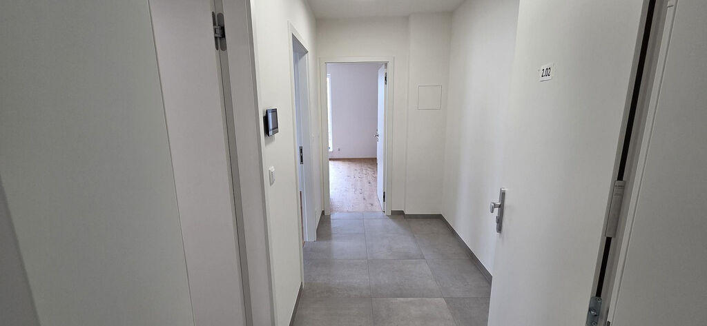 Byt má dřevěnou podlahu s podlahovým vytápěním, které lze regulovat v každé místnosti zvlášť, a to i na dálku přes chytrý telefon.