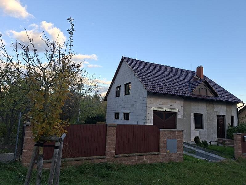 Na domě není dokončená fasáda, podbití střechy, terénní úpravy, chybí brána. Vybavení domu bude ponecháno dle dohody.