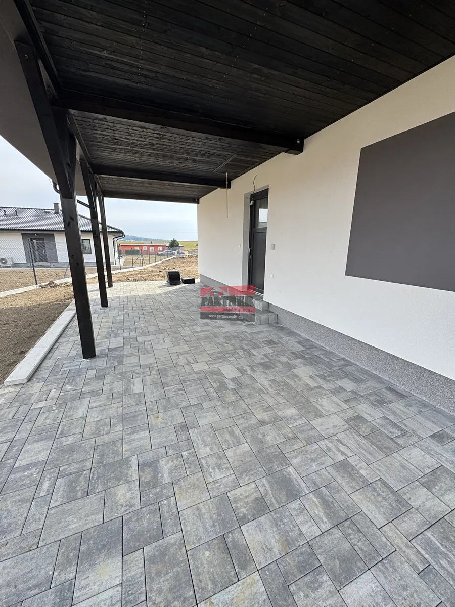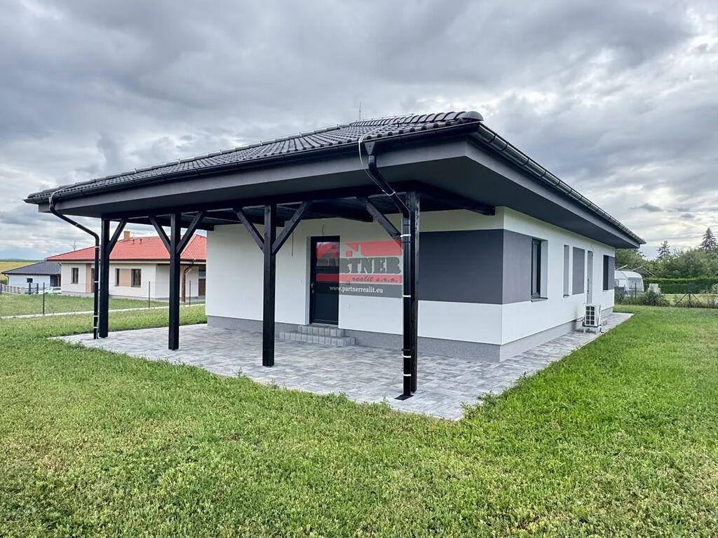 Tento světlý a útulný bungalov nabízí promyšlenou dispozici – prostorné zádveří, velký obývací pokoj s kuchyňským koutem a přímým vstupem na terasu, tři samostatné pokoje, koupelnu se sprchovým koutem, samostatné WC a chodbu s druhým vstupem do domu. Kvalitní vinylové podlahy podtrhují moderní a příjemnou atmosféru interiéru. K domu náleží přístřešek (27 m²), zahradní domek (19 m²) a rozlehlý pozemek o velikosti 1 404 m², který je kompletně oplocený a opatřený elektrickou vjezdovou bránou.