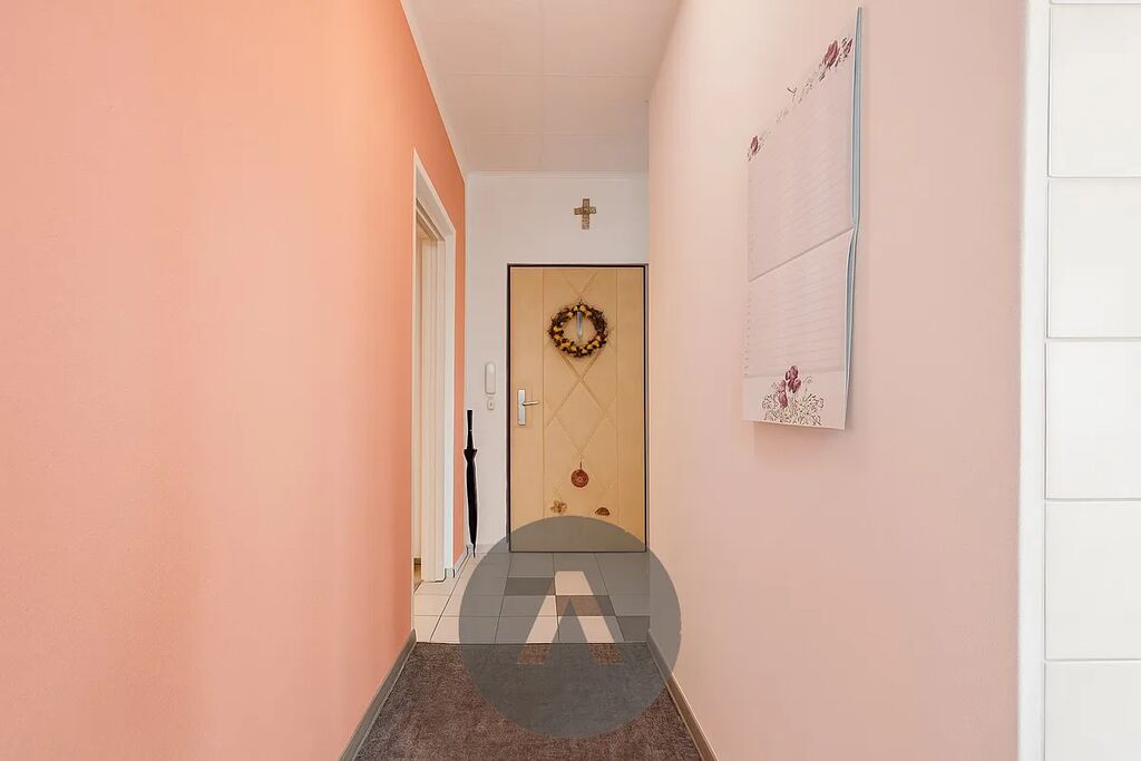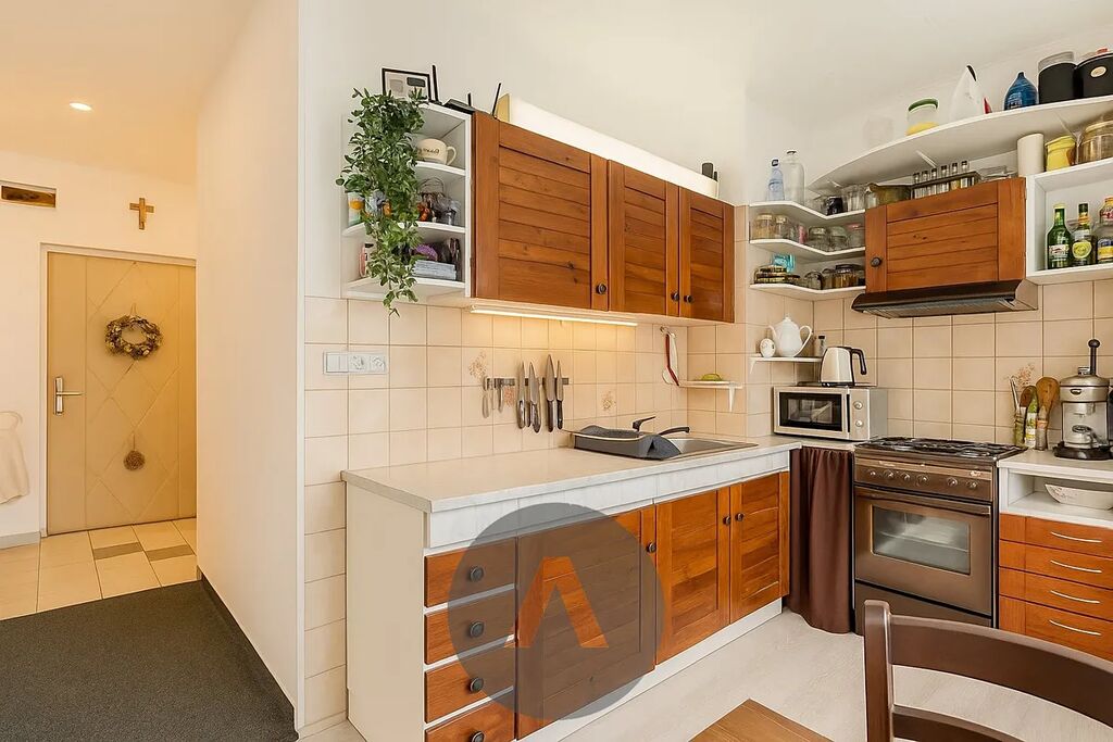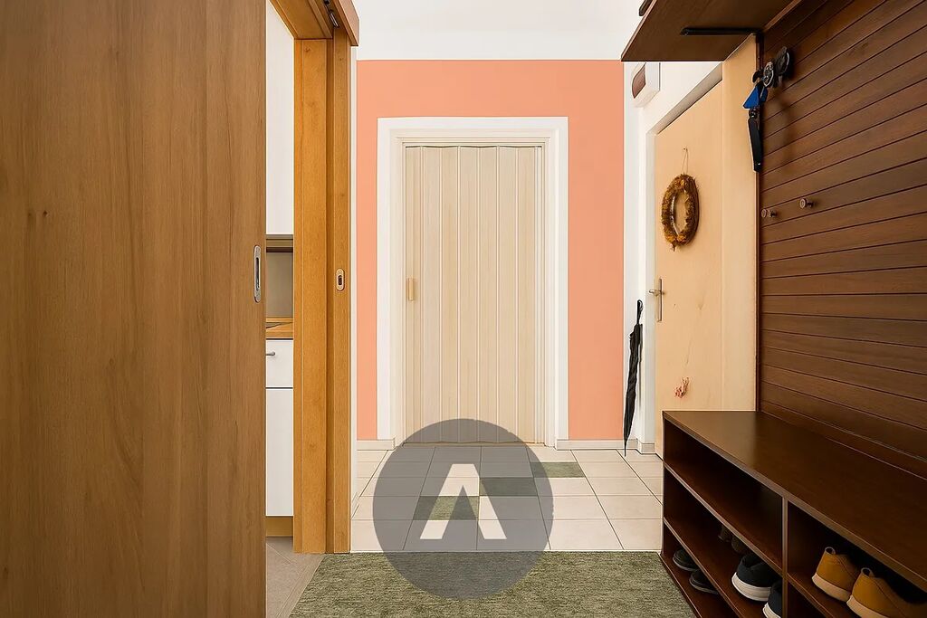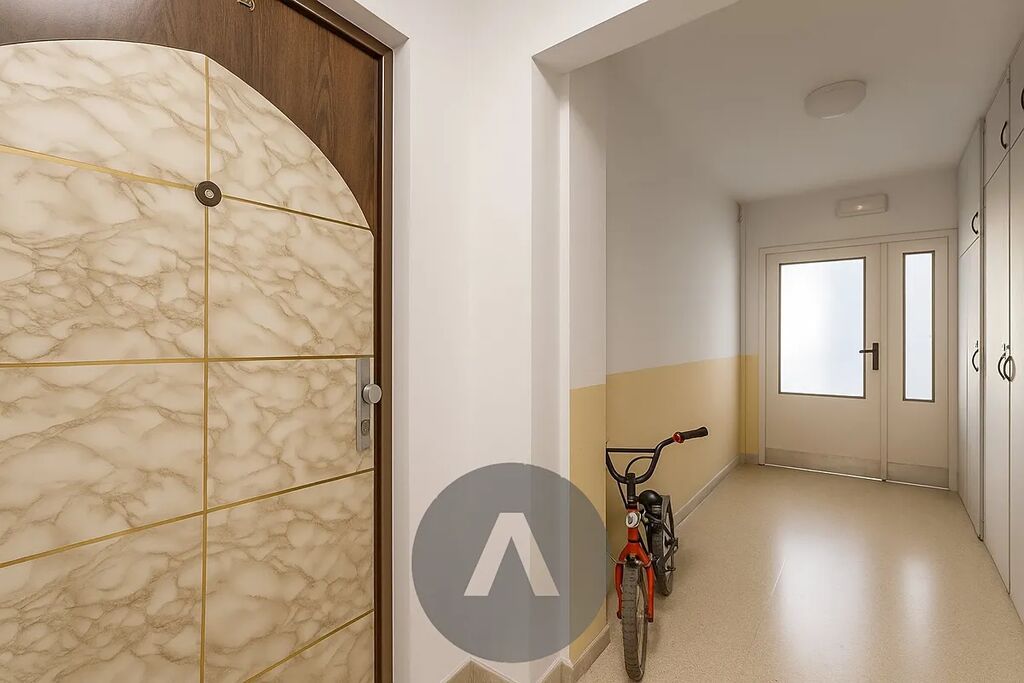K bytu patří sklepní kóje a uzamykatelná chodba s vestavěnou skříní, která přináší praktický úložný prostor.