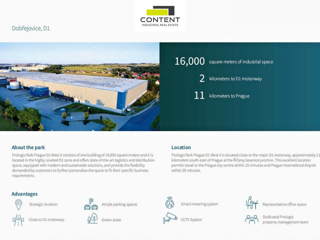 - výborná poloha u dopravního uzlu dálnice D1, exit 12 a pražského okruhu D0,