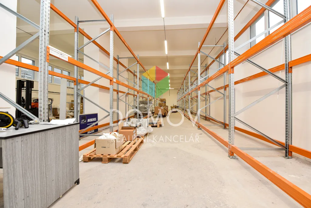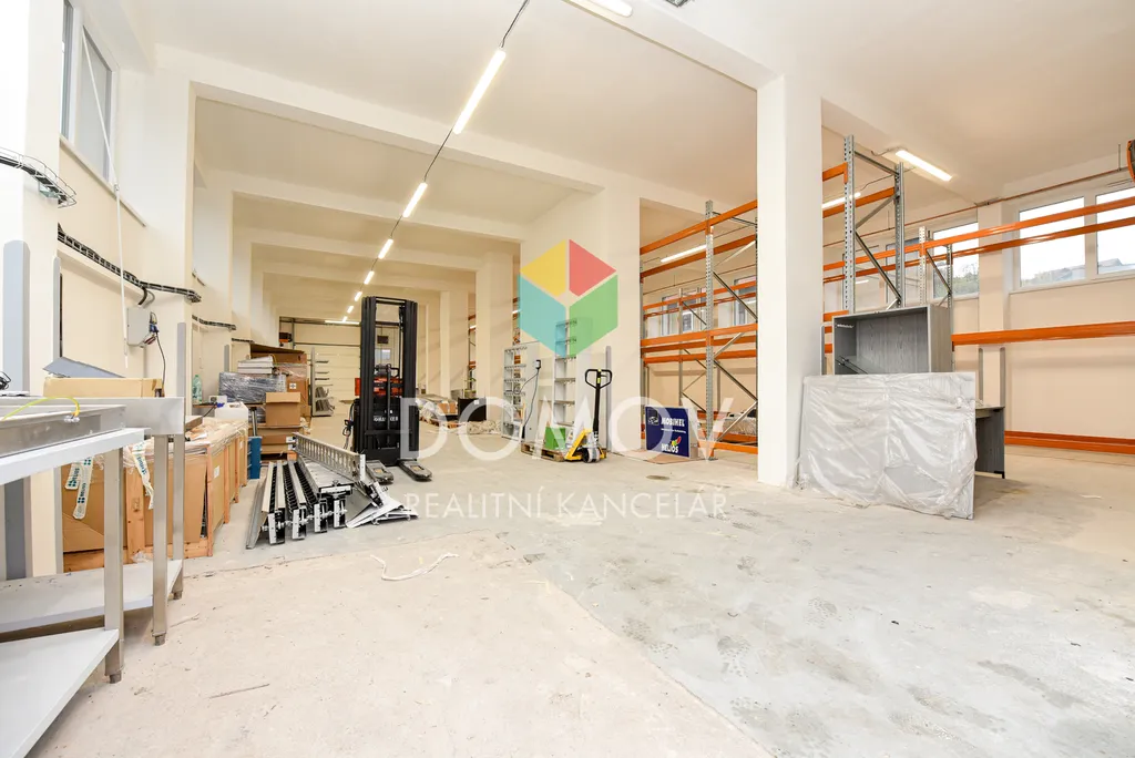 K objektu dále náleží oplocený pozemek o výměře 819 m², vhodný jako venkovní skladovací či manipulační plocha. Parkování je možné přímo na pozemku.