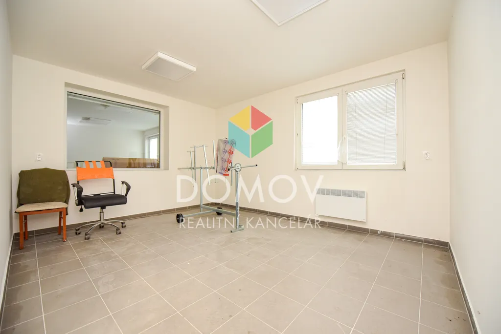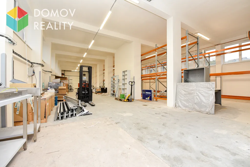 Součástí objektu je zázemí o výměře 60 m², kde se nachází dvě kanceláře, kuchyňka, sprcha a toaleta, což poskytuje veškerý komfort pro administrativní i provozní potřeby.