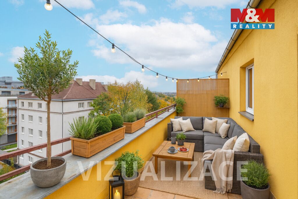 Velká terasa, která rozšiřuje obytný prostor a nabízí příjemné soukromí.