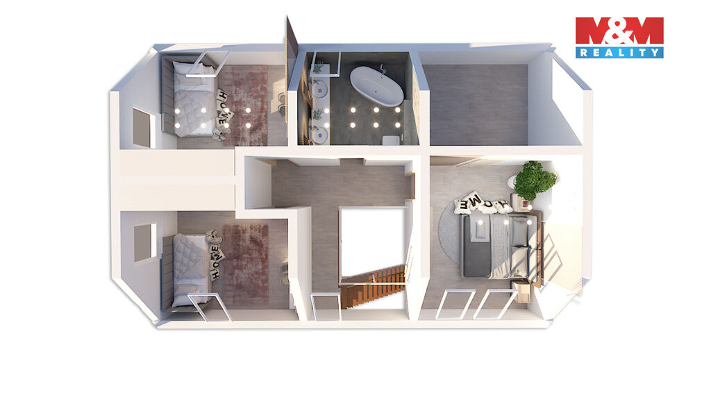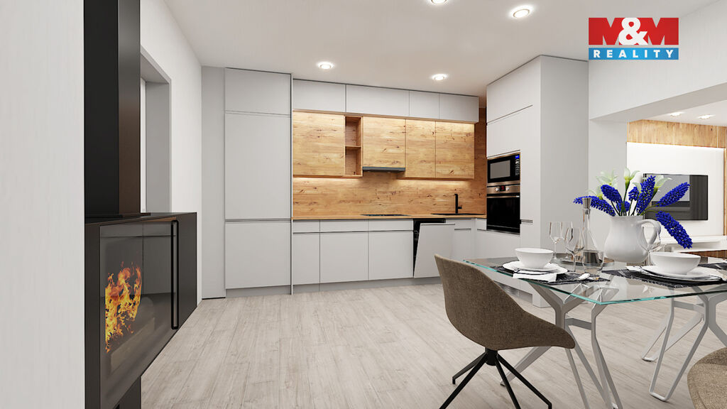 Dispozici domu tvoří obývací pokoj, ložnice, kuchyně, koupelna, wc a technická místnost. Projekt počítá s rozšířením domu o obytné podkroví na dispozici 5+1. Dům je napojen na veškeré IS, má udělanou přípravu rozvodů elektřiny v mědi. Vytápění bylo zajištěno pomocí krbových kamen, rozvody topení čekají na realizaci. Součástí domu je garáž se stodolou a prostorný sklep.