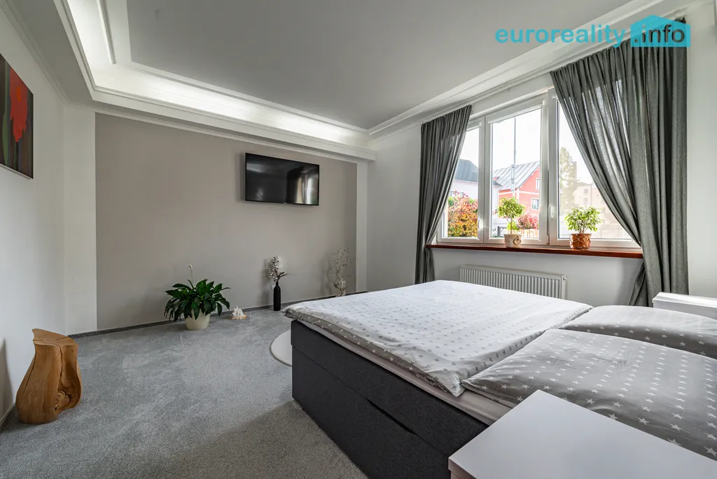 Nabízíme k prodeji exkluzivní rodinný dům s ateliérem/dílnou a garáží, situovaný v malebné oblasti Chodové Plané, v okrese Tachov. Tento samostatný přízemní objekt je ideální volbou pro ty, kteří hledají spojení komfortu s přírodou v harmonickém prostředí. Dům o zastavěné ploše 462 m² a užitné ploše 274 m² je v velmi dobrém stavu a nachází se na parcele o rozloze 627 m². Interiér je po moderní a velmi elegantní rekonstrukci s důrazem na kvalitu a detail. Vybavení nemovitosti je částečné, což umožňuje dalšímu uživatelskému rozvoji. Atmosféra domu s velkorysými a prosvětlenými prostory, podtrhuje pocit prostornosti, který si budete užívat. Tento dům disponuje dvěma samostatnými byty 166 m2 a 71 m2, atelierem/dílnou 71 m2 s vlastním zázemím, garáží 49 m2 a dvěma parkovacími místy, což zaručuje dostatek prostoru pro vozidla a další potřeby. Moderní technické vybavení zahrnuje připojení na vodovod, kanalizaci i plyn. Teplo je zajišťováno kotlem na tuhá paliva, zatímco teplou vodu dodává elektrobojler. Úvodní fotografie obsahují vizualizaci nové fasády, na kterou se již sjednává dotace.
